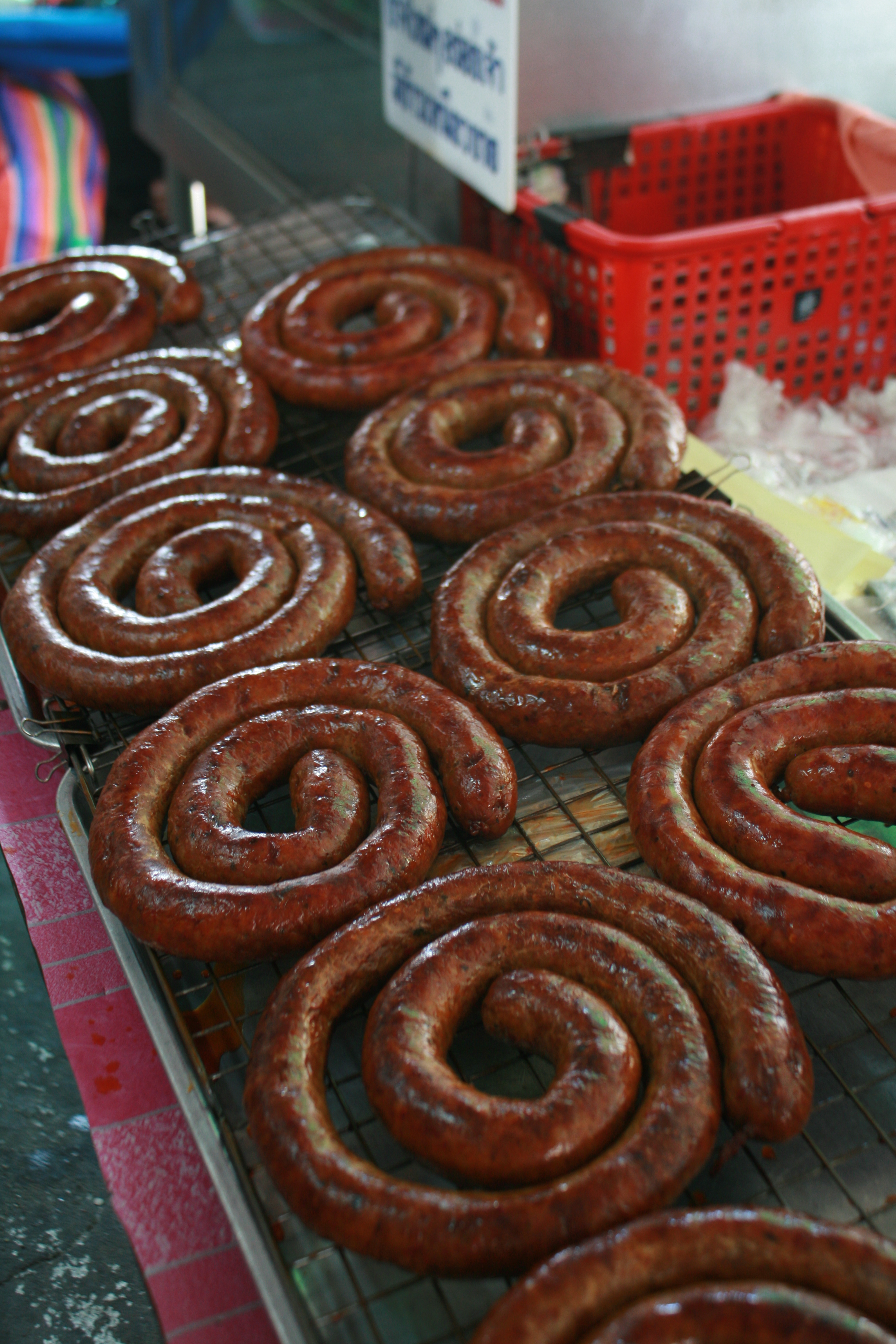Just outside our hotel, we explored Thaphae road walking towards the old city. Before crossing the river, along Chaiyapoom road, on the right there is a restaurant called Daret’s House. They serve delicious northern Thai food, one famous being the “khao soi gai“. It is basically a curried noodle soup with chicken. It is interesting to note that the curry up in the north tastes slightly different. Make sure you also try the northern Thai sausage, “sai oua” These dishes are heavily influenced by the Burmese. I couldn’t believe that sausage was one of THE dishes to try up here in northern Thailand! Amazing! The sausage can be found in markets, don’t miss your chance and grab one! Don’t expect your typical german/hungarian flavours but instead more of lemongrass, coriander, chilli, and garlic!